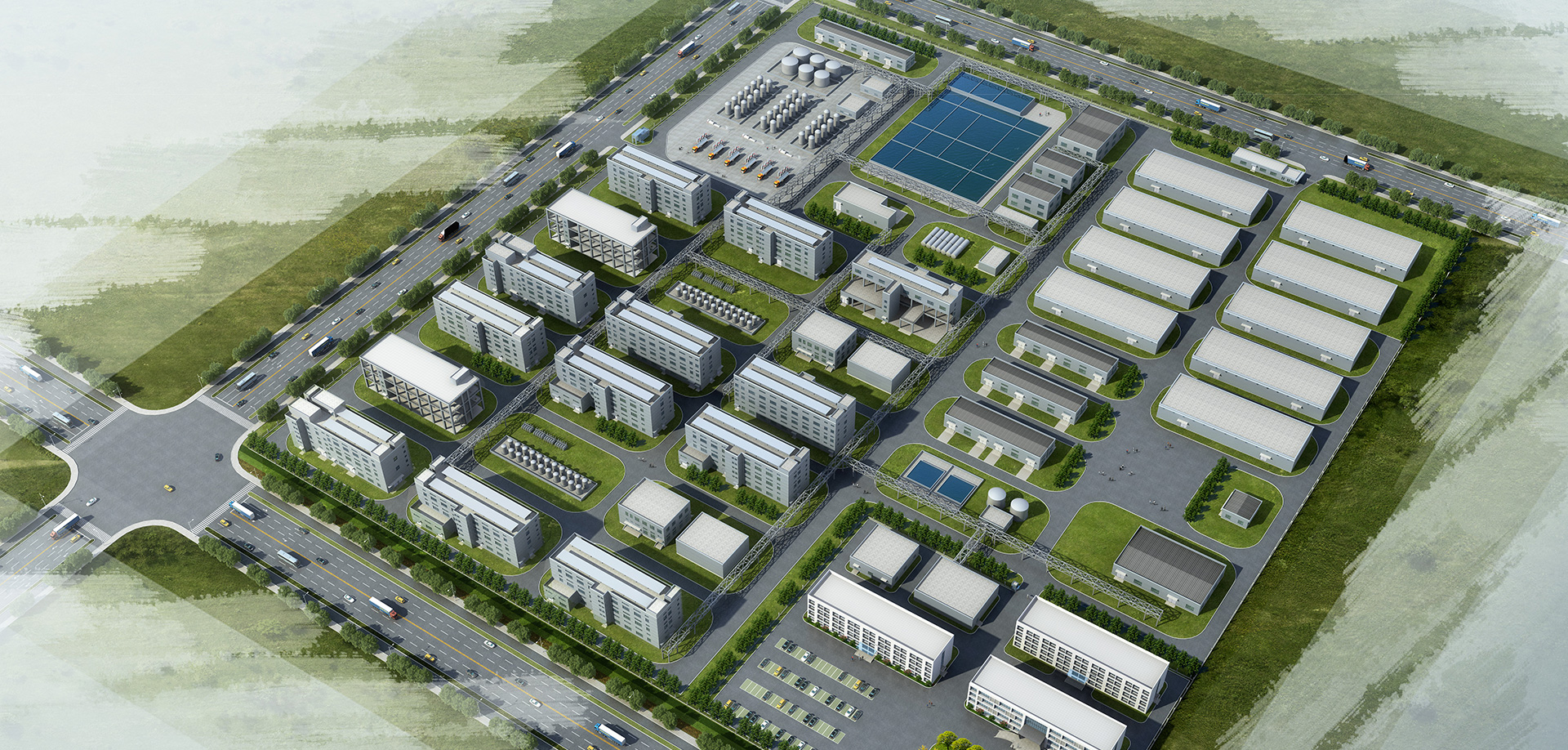 建設產品生產中心、環保處理中心、倉儲管理中心、公用工程中心、分析研究中心等區域